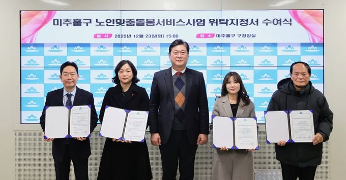 (포탈뉴스통신) 인천 미추홀구는 23일 구청장실에서 ‘노인 맞춤 돌봄서비스 사업 위탁지정서 수여식’을 개최했다.