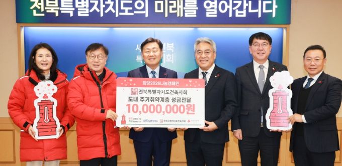 전북자치도는 24일 도청 회의실에서 전북특별자치도 건축사회가 사회복지공동모금회에 이웃사랑 성금 1,000만 원을 전달했다고 밝혔다.