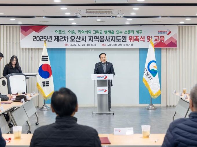 (포탈뉴스통신) 오산시는 지난 23일 오산시청 물향기실에서 신규 경로당 회장을 대상으로 한 '2025년 지역봉사지도원 위촉식'을 개최했다고 밝혔다.