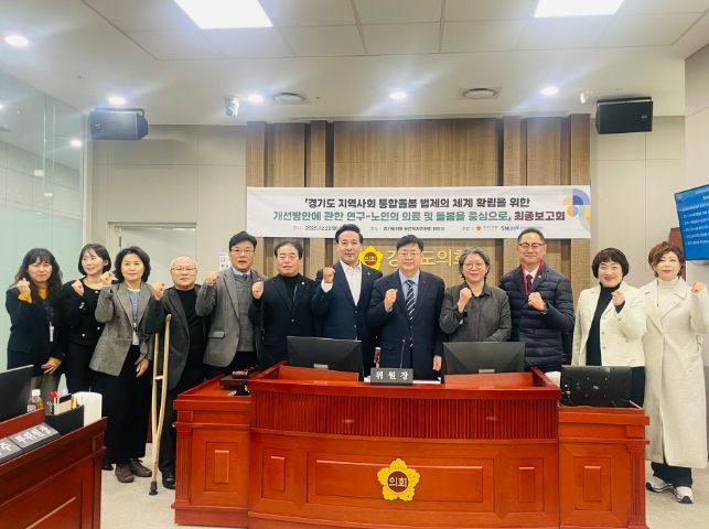 (포탈뉴스통신) 경기도의회 보건복지위원회 연구단체인 보건복지연구회(회장 이선구 위원장, 더불어민주당, 부천2)는 12월 22일, '경기도 지역사회 통합돌봄 체계 확립을 위한 개선방안에 관한 연구'를 주제로 연구용역 최종보고회를 개최했다.