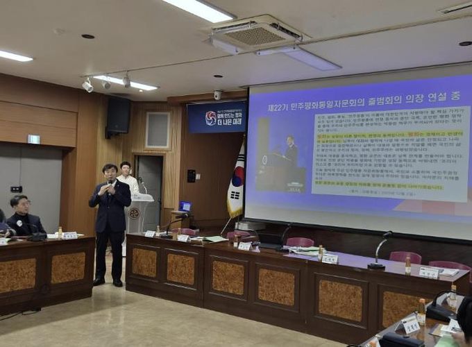(포탈뉴스통신) 민주평화통일자문회의 홍성군협의회는 지난 24일 홍성군청 대강당에서 자문위원 50명이 참석한 가운데‘화해·협력의 남북 관계 재정립을 위한 정책 방향’을 주제로‘2025년 4분기 정기회의’를 개최했다.