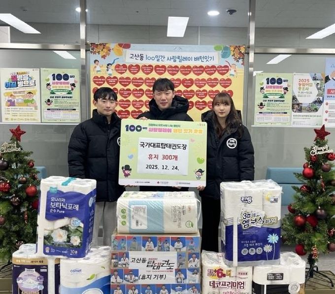 (포탈뉴스통신) 의정부시 고산동주민센터는 12월 24일 고산동 소재 국가대표 탑 태권도장이 지역 저소득층을 위해 두루마리 화장지 300개를 기부했다고 밝혔다.