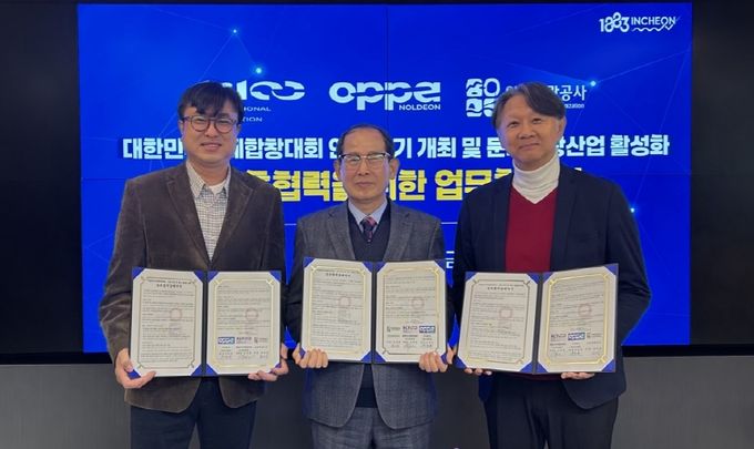 (포탈뉴스통신) 인천관광공사(사장 유지상)와 대한민국국제합창대회 조직위원회(위원장 김희철), ㈜놀던오빠들(대표 김준호)은 26일 인천관광공사에서 ‘대한민국국제합창대회 인천 개최(2026년~2030년) 및 문화관광 활성화’를 위한 업무협약을 체결했다.