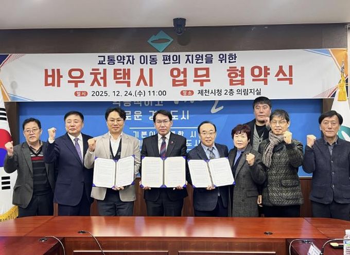 (포탈뉴스통신) 제천시는 지난 24일 교통약자의 이동권 보장과 이동 편의 증진을 위해 청풍호콜센터, ㈜티머니 모빌리티와 바우처택시 업무협약을 체결했다.