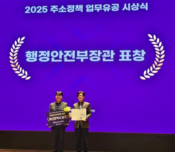 (포탈뉴스통신) 부산광역시 남구는 행정안전부가 주관한 ‘2025년 주소정책 업무 유공’ 분야에서 우수 기관으로 선정돼 행정안전부 장관 표창을 수상하고, 특별교부세 4천만 원을 확보했다고 밝혔다.