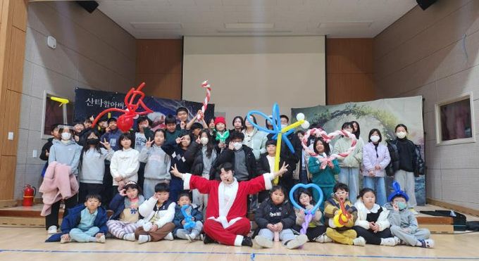 등장만으로도 아이들의 얼굴에 미소를 띠게 했으며, 풍선을 이용해 다양한 모양의 선물을 만들어 나누어 주었다.