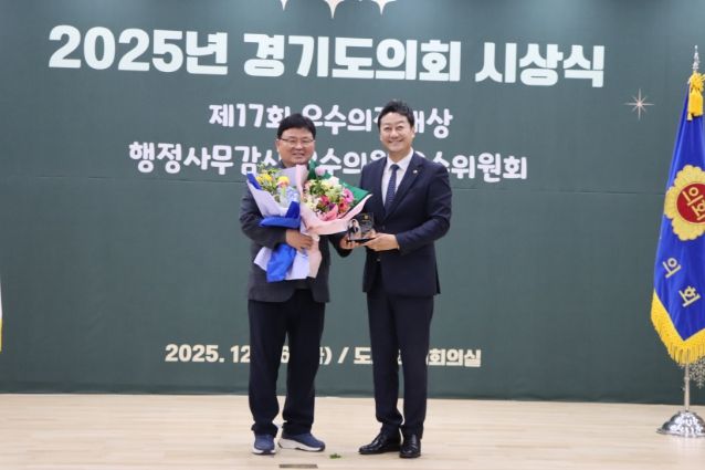 (포탈뉴스통신) 경기도의회 교육기획위원회 이택수 의원(국민의힘, 고양8)과 성기황 의원(더불어민주당, 군포2)이 26일 열린 2025년 경기도의회 시상식에서 ‘2025년 행정사무감사 우수위원’으로 선정됐다.