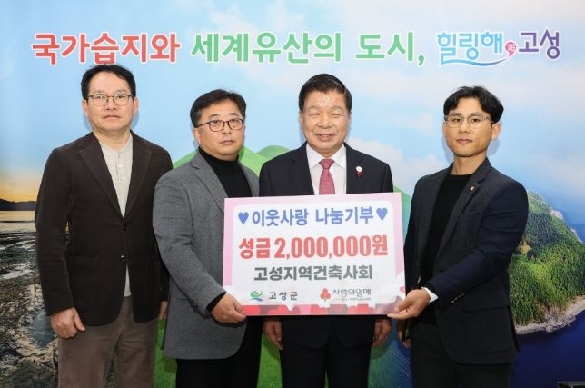(포탈뉴스통신) 고성군은 대한건축사협회 고성지역건축사회(회장 신재규)가 12월 24일 고성군을 방문하여 관내 저소득계층에 전달해 달라며, 이웃돕기 성금 200만 원을 기탁했다.