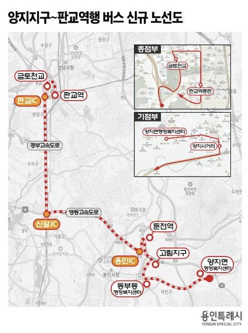 (포탈뉴스통신) 용인 양지지구를 출발해 고림동과 둔전역을 거쳐 성남 판교역까지 운행하는 버스 노선이 확정됐다.