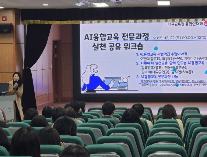 (포탈뉴스통신) 대구시교육청은 12월 27일 오전 9시, 대구인공지능교육센터 시청각실에서 ‘AI융합교육 전문과정’ 실천 공유 워크숍을 운영했다.