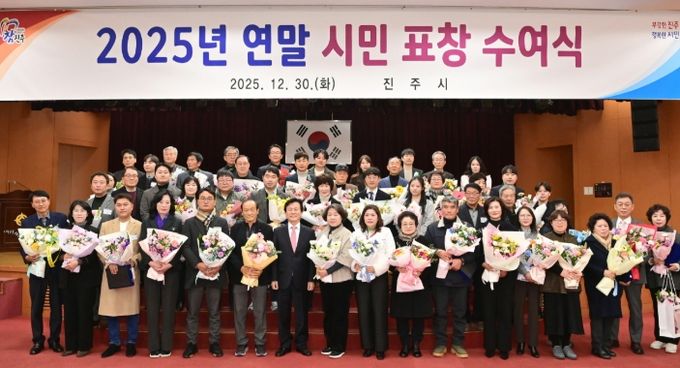 (포탈뉴스통신) 진주시는 30일 시청 시민홀에서 지역사회 발전과 선행 활동을 몸소 실천하며 공동체의 귀감이 된 시민 98명을 대상으로 ‘2025년 연말 시민 표창 수여식’을 개최했다.