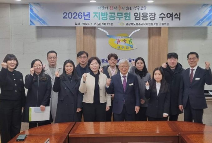 (포탈뉴스통신) 성주교육지원청은 2026년 1월 2일 청사 내 소회의실에서 지방공무원 전입자 및 신규 임용자를 대상으로 임용장 수여식을 개최했다.