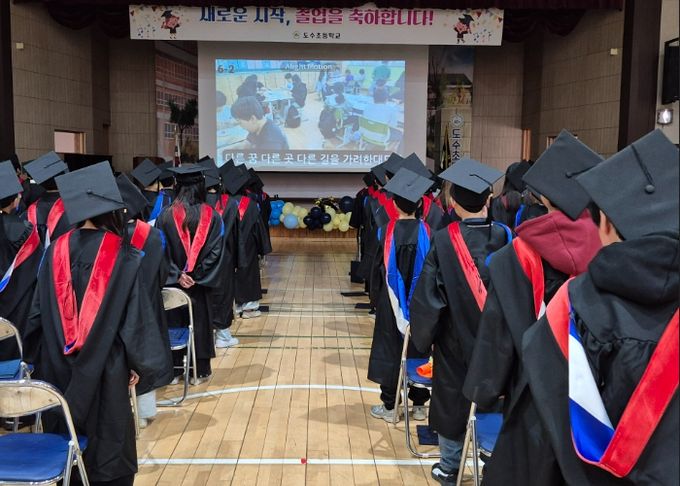 이번 졸업식은 졸업생 전원이 학사복과 학사모를 착용하고 참여해 6년간의 학업을 마친 성취와 도수초 공동체의 일원임을 상징적으로 보여주며 눈길을 끌었다. 졸업생들은 학사모 던지기 이벤트를 통해 새로운 출발을 향한 다짐과 기쁨을 함께 나눴으며, 졸업생 전원에게는 1인 1표창장이 수여됐다.