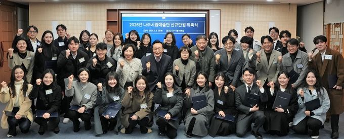 나주시는 지난 5일 시청 이화실에서 나주시립예술단 신규 단원 위촉식을 열고 공개경쟁을 통해 선발된 국악단과 합창단 신규 단원 34명에게 위촉장을 수여했다고 6일 밝혔다.
