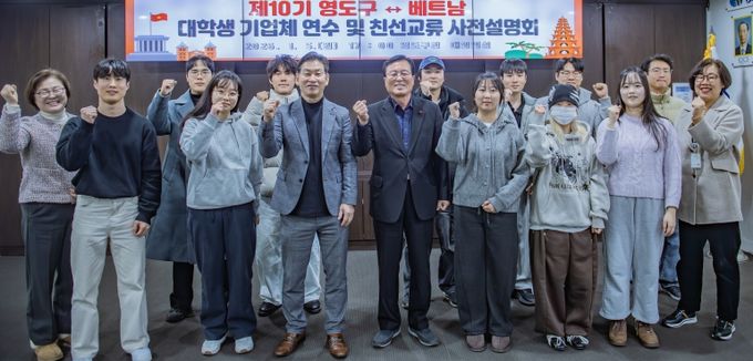이번 연수는 오는 1월 20일부터 1월 24일까지 영도구 관내 거주 대학생 또는 관내 대학교(한국해양대, 고신대) 재학생 15명을 대상으로 베트남 호치민시 벤캇 일원에서 진행된다. 영도구, 영도구 국제교류협의회, ㈜성현비나가 공동 추진하며 (재)행복영도장학회가 후원한다.