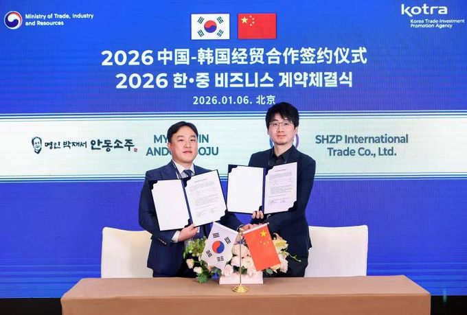 (포탈뉴스통신) 안동시는 대한민국 전통 증류주인 안동소주가 2026 한․중 비즈니스 파트너십 행사에서 중국 유력 주류 유통사와 미화 140만 달러(한화 20억 원) 규모의 수출 계약을 체결했다고 1월 7일 밝혔다.