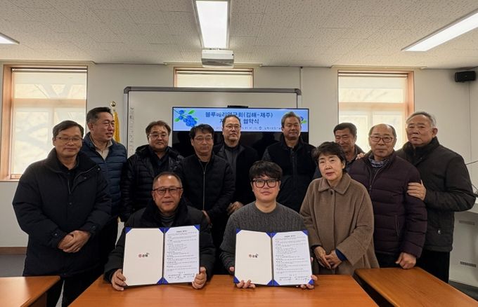 협약식에는 김해와 제주 양 지역 블루베리연구회 임원진 12명이 참석했다. 양 연구회는 ▲블루베리 재배기술 및 품질관리 사례 공유 ▲지역별 재배 여건에 따른 현장 중심 기술 교류 ▲생산·유통·판로 확대를 위한 정보 교류 등을 단계적으로 추진할 계획이다.