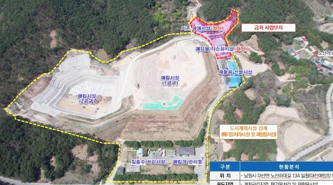 2030부터 시행되는 정부의 생활폐기물 직매립 금지 정책에 선제적으로 대응하기 위해 대산매립장 위치에 광역 소각시설 설치를 추진 중이다.