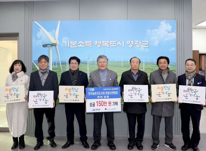 (포탈뉴스통신) 한국농촌지도자회 영광군합회가 12월 7일 영광군청을 방문해 지역의 어려운 이웃을 돕기 위한 성금 150만 원을 전달했다.