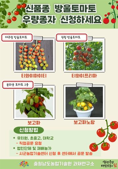 (포탈뉴스통신) 충남도 농업기술원은 재배농가와 교육기관을 대상으로 신품종 방울토마토 우량종자 4종 10만립을 공급한다고 11일 밝혔다.