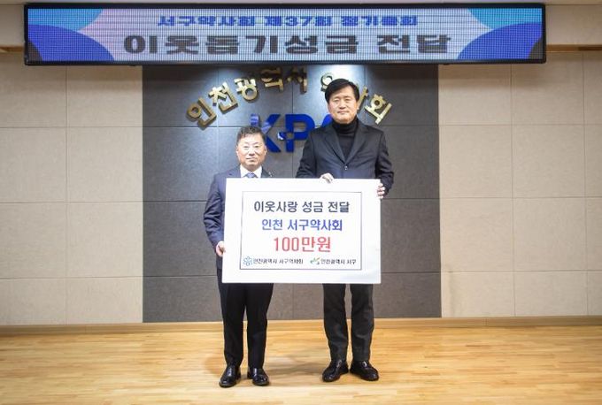 (포탈뉴스통신) 인천광역시 서구약사회는 지난 10일 열린 제37회 서구약사회 정기총회에서 이웃사랑 성금 및 관내 저소득가정 모범학생들을 위한 장학금을 전달했다.