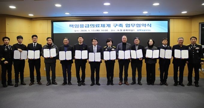 (포탈뉴스통신) 전북특별자치도소방본부는 응급환자 수용 지연을 최소화하고 중증응급환자가 신속하고 적정한 치료를 받을 수 있도록, 전북특별자치도 복지여성보건국 및 도내 권역·지역응급의료센터 10곳과 '2026년 책임응급의료체계 구축을 위한 업무협약'을 체결했다.
