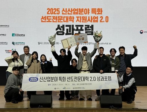 (포탈뉴스통신) 강원도립대학교는 ‘신산업분야 특화 선도전문대학 지원사업 2.0 성과포럼’ 우수성과 전시 시상식에서 대학 부문 우수성과 ‘대상’ 수상과 함께, 소속 학생인 한재민 학생이 개인 부문 사업 성과 대상(교육부 장관상)을 수상하여 대학·개인 2개 부문을 석권했다.