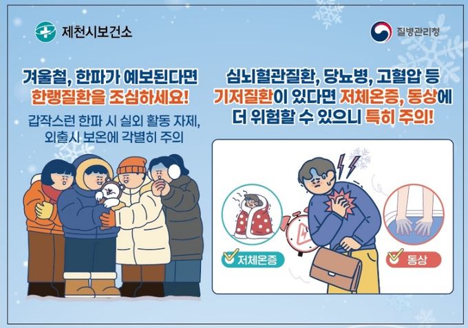 (포탈뉴스통신) 제천시보건소(소장 안순덕)가 겨울철 한파로 인한 건강 피해를 예방하기 위해 독거 어르신, 만성질환자, 거동 불편자 등 건강 취약계층을 대상으로 집중 건강관리를 추진한다.