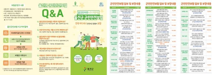 군민안전보험은 울진군에 주민등록을 두고 거주하는 모든 군민을 대상으로 하며, 별도의 신청 없이 자동으로 가입된다.