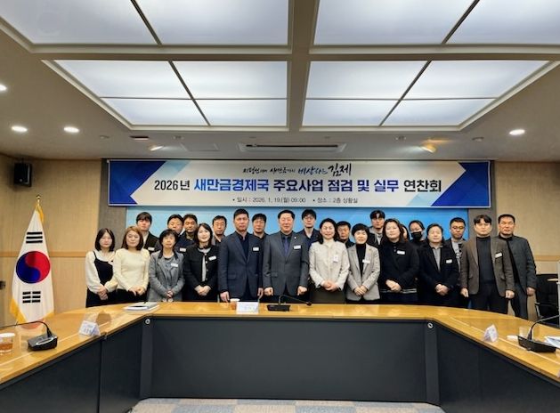 (포탈뉴스통신) 김제시는 새만금경제국(국장 강기수)이 19일, 2026년 주요사업의 성공적인 추진을 위해 경제진흥과, 투자유치과, 새만금전략과, 체육진흥과, 해양항만과의 부서장을 포함한 팀장들이 모여 전략회의를 진행했다고 밝혔다. 이번 회의는 2026년 주요사업의 추진 방향과 전략을 점검하고, 부서 간 협력 방안을 논의해 새만금경제국의 개발사업 및 정책사업의 효율적 추진을 도모하는 데 목적이 있다.