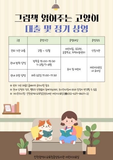 (포탈뉴스통신) 인천광역시교육청중앙도서관은 그림책 스트리밍 서비스'그림책 읽어주는 고양이'를 2월부터 관내 희망 기관에 대출한다