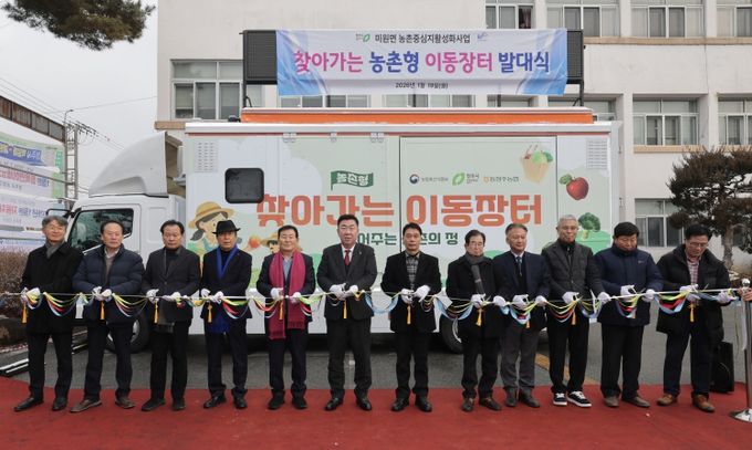 이날 미원면 행정복지센터에서 진행된 발대식에는 이범석 청주시장을 비롯한 시 관계자와 시의원, 도의원, 한국농어촌공사 및 농협 관계자, 미원면 주민 등 40여명이 참석해 이동장터의 출발을 축하했다.