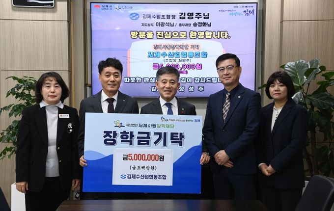 김제수산업협동조합은 지난해부터 꾸준히 김제사랑장학재단에 장학금을 기탁하며, 지역사회의 미래를 함께 키워가는 사회공헌 활동을 이어오고 있다.