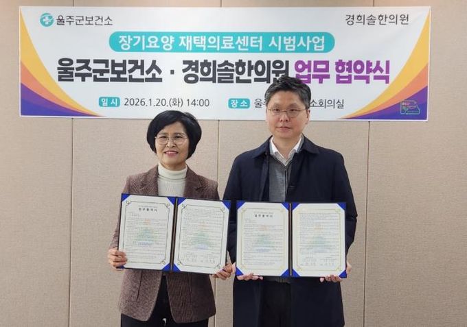 (포탈뉴스통신) 울주군보건소가 20일 경희솔한의원과 장기요양 재택의료센터 시범사업 업무협약을 체결했다.