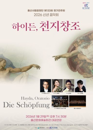 (포탈뉴스통신) 울산시립합창단은 오는 1월 29일 오후 7시 30분 울산문화예술회관 대공연장에서 신년음악회로 제133회 정기연주회인 하이든의 ‘천지창조(The Creation)’를 선보인다.
