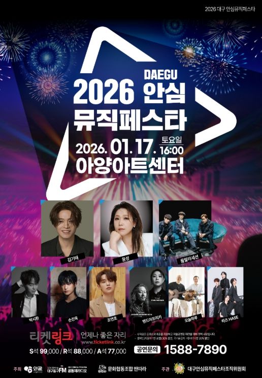 ‘2026 대구 안심뮤직페스타’에는 김기태, 윤성, 울랄라세션 등 다양한 가수들이 참여하여 화려한 무대를 선보였다.