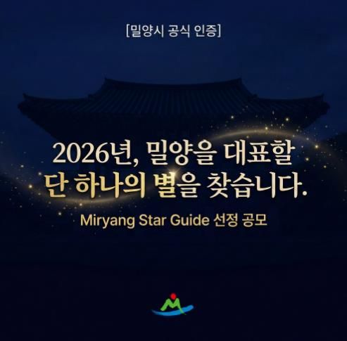 (포탈뉴스통신) 밀양시는 관광객이 신뢰하고 선택할 수 있는 지역 대표 관광 기준을 마련하기 위해 ‘2026년 밀양 관광의 별(Miryang Star Guide)’을 공개 모집한다고 21일 밝혔다.