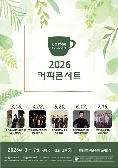 (포탈뉴스통신) 인천문화예술회관(관장 홍순미)이 간판 브랜드 공연 〈커피콘서트'의 2026년 상반기 출연진을 공개한다.