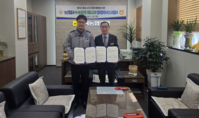 (포탈뉴스통신) 2026. 1. 20. 논산경찰서(서장 여상봉)는 국민은행 논산지점 및 농협 계룡시지부와 함께 날로 지능화하는 보이스피싱 범죄에 공동 대응하기 위한 업무협약을 체결했다고 밝혔다.