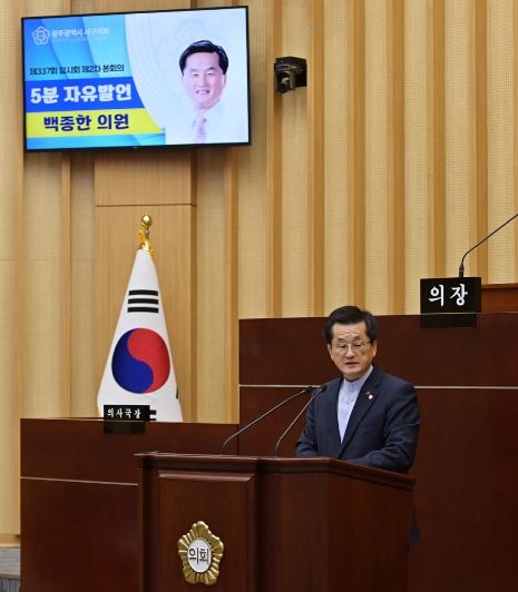 (포탈뉴스통신) 광주 서구의회 백종한 의원(화정3동, 화정4동, 풍암동)이 23일 제337회 임시회 제2차 본회의에서 5분자유발언을 통해 재난·안전·민생·복지 현장에서 근무해 온 공직자들의 노고를 치하했다.