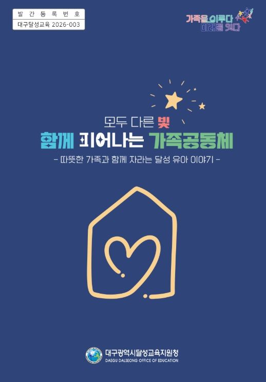 (포탈뉴스통신) 대구달성교육지원청은 유아가 처음 소속되는 공동체인 가족의 의미를 다룬 장학자료 '모두 다른 빛, 함께 피어나는 가족공동체'를 제작해 26일부터 45개 유치원에 보급한다고 밝혔다.