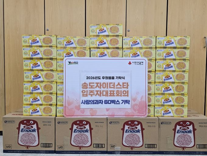 (포탈뉴스통신) 연수구는 지난 26일 송도자이 더 스타 입주자대표회의(회장 김소희)로부터 지역 내 취약계층 아동을 위한 과자 60상자를 전달받았다.