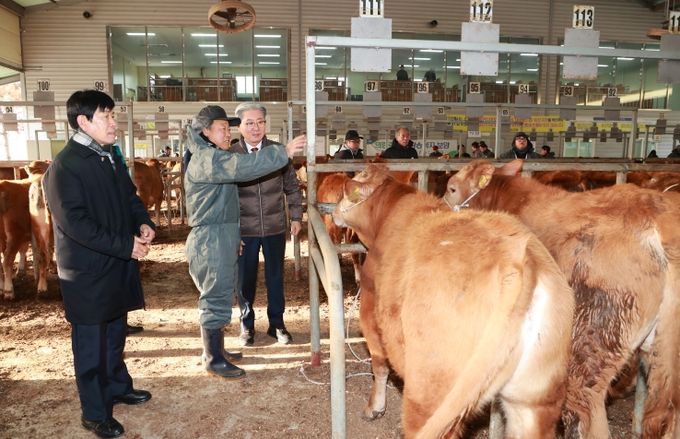 (포탈뉴스통신) 의령군은 지난 26일 이른 아침 의령축협이 운영하는 가축시장을 방문해 한우 거래가격 동향과 송아지 경매 상황을 점검하고, 한우 사육 농가의 애로사항을 청취했다.