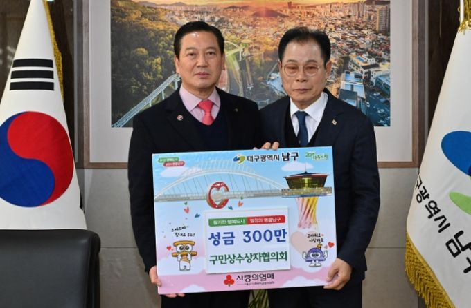 (포탈뉴스통신) 대구 남구 구민상수상자협의회(회장: 조영원)는 지난 23일 남구를 찾아 어려운 이웃을 위해 써달라며 성금 300만원을 기탁했다. 이날 성금은 저소득 소외계층을 위해 사용될 예정이다.