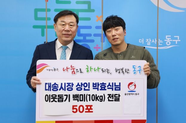 (포탈뉴스통신) 울산 동구 대송시장에서 식품유통업체를 운영하고 있는 new캐슬장터 박효식 대표가 1월 28일 오전 11시 10분 동구청을 방문해 시가 200만원 상당의 쌀(10kg) 50포를 전달했다.