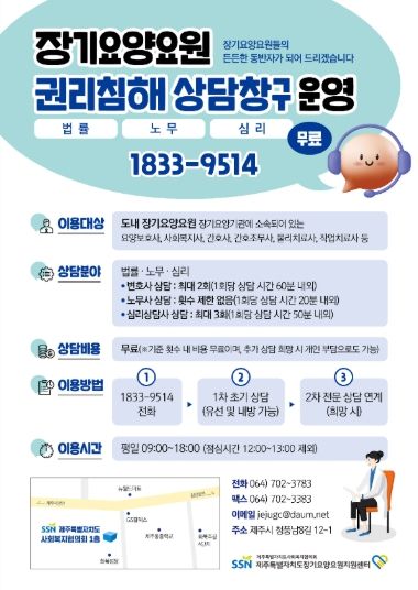(포탈뉴스통신) 제주특별자치도가 도 단위 최초로 요양보호사 등 장기요양기관 종사자를 위한 전용 상담전화 ‘시시콜콜’을 개설해 1월부터 운영하고 있다.