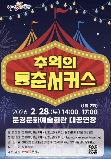 (포탈뉴스통신) 문경문화예술회관에서는 가족 연인 직장 동료들과 함께 재미있게 볼 수 있는 추억의 동춘서커스 공연을 2월 28일(토) 14:00, 17:00 (1일2회)에 문경문화예술회관 대공연장에서 개최한다.