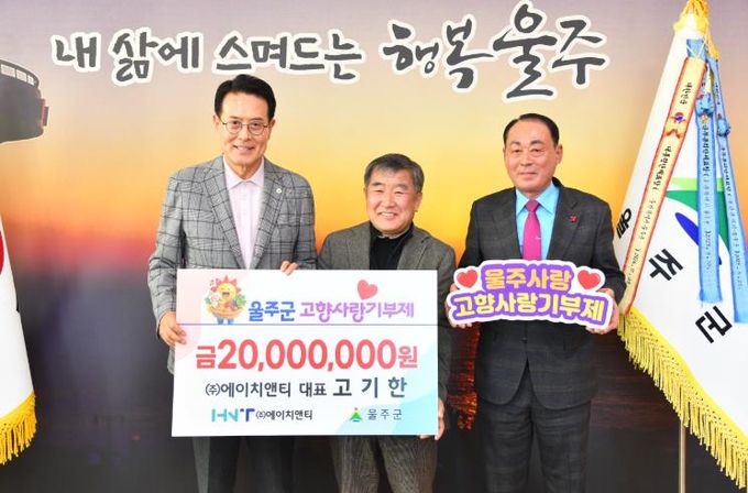 (포탈뉴스통신) 고기한 ㈜에이치앤티 대표가 3일 울주군에 고향사랑기부금 연간 최고액인 2천만원을 전달하면서 4년째 고향사랑을 실천하고 있다.