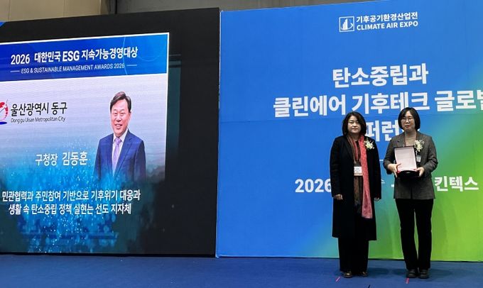 (포탈뉴스통신) 울산 동구는 환경일보와 한국환경경영학회가 공동으로 주최하는 2026 대한민국 ESG 지속 가능 경영대상에서 전국 19개 대상 수상기관 중 하나로 선정되는 영예를 안았다.