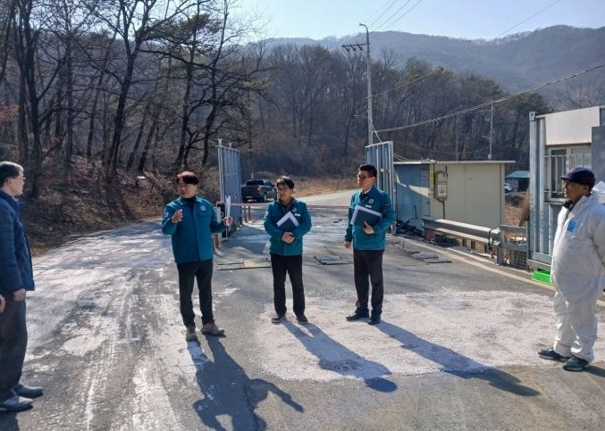 이정곤 부시장은 농장 출입 전 소독을 위해 설치된 통제초소 운영 상황을 확인하고, 농가별 내·외부 울타리와 소독시설 등 방역 체계를 꼼꼼히 점검했다. 4일 오전 2시 30분부터 5일 2시 30분까지 발효된 일시이동중지 명령으로 농장 내부 점검은 제한됐으나, 가능한 모든 분야를 철저히 살피며 농가 관계자들에게 방역 수칙 준수를 강력히 당부했다.